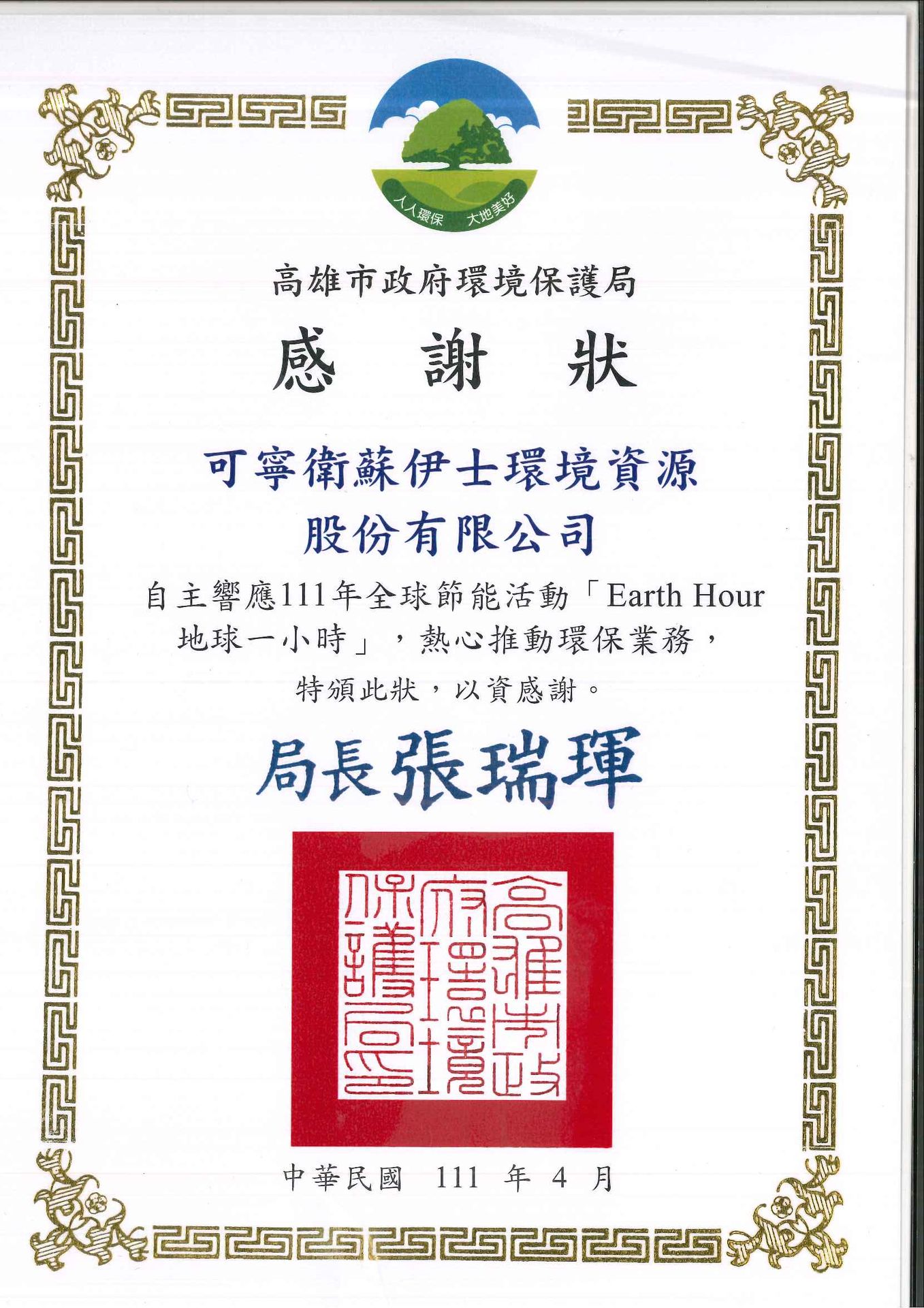 可寧衛蘇伊士公司積極響應有關環境保護及節能減碳議題,於2022年03月26日「國際關燈日」晚間20:30~21:30關閉非必要之燈光,節能減碳愛地球。