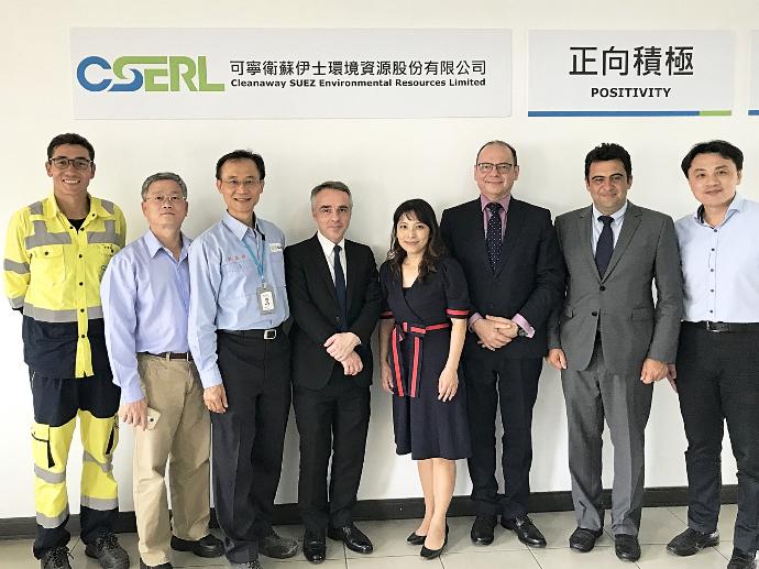 法國在臺協會紀博偉(Benoit GUIDEE)主任偕同經濟處處長陳百德(Alain BERDER)與資深顧問余白(Hubert KILIAN),在4月份透過蘇伊士新創建的牽線,前往高雄大發廠(可寧衛蘇伊士公司)進行與該廠首次的台法交流。藉由廠方的介紹與現場參訪,讓協會代表對台灣現有的有害廢棄物處理技術與整體市場有了進一步的認識。